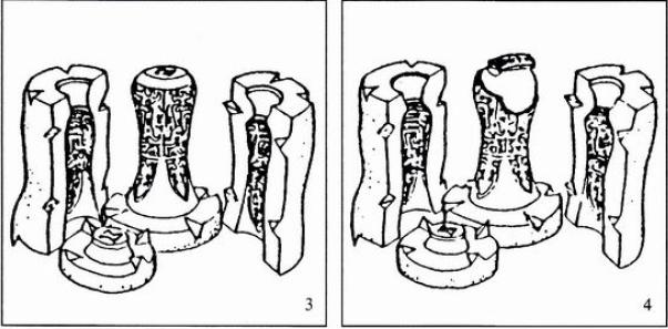(3)修整外范后,需要刻制精細(xì)的紋飾,再把小塊外范拼接成大塊。